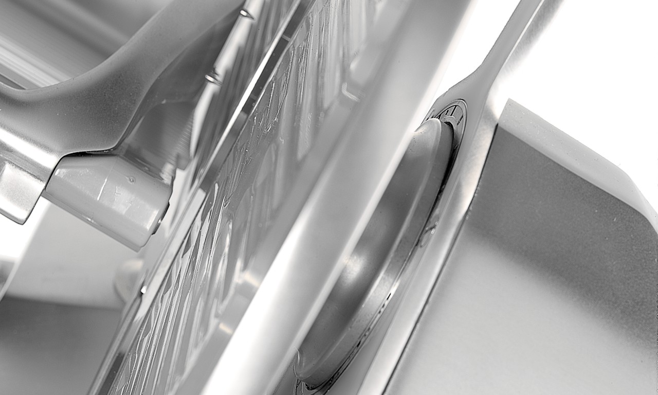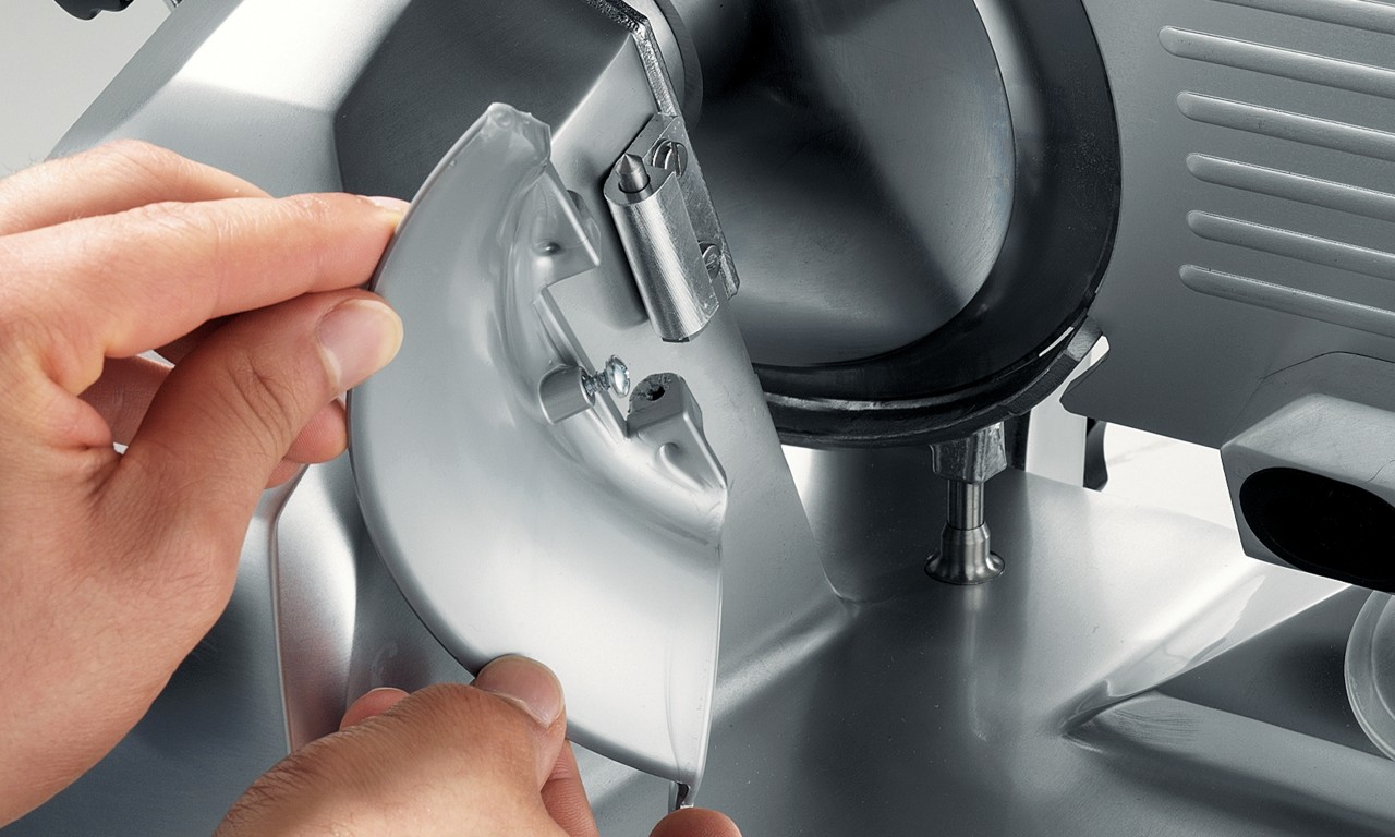 Tornillería de acero inoxidable y deflector de rebanadas.