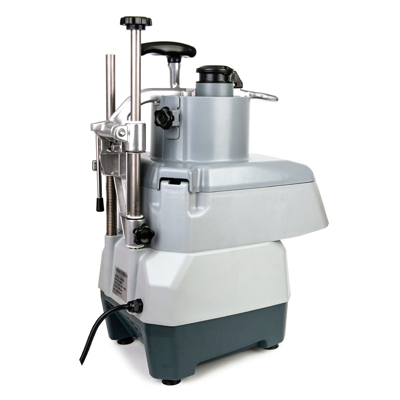 Un recipiente para lotes y un accesorio cortador de verduras funcionan en la misma base del motor.