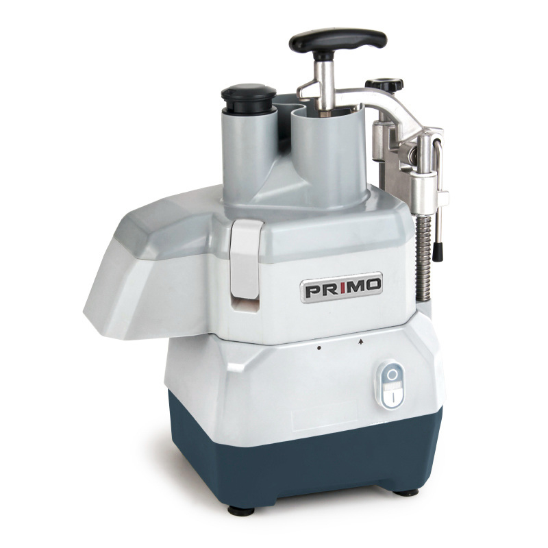 Un recipiente para lotes y un accesorio cortador de verduras funcionan en la misma base del motor.