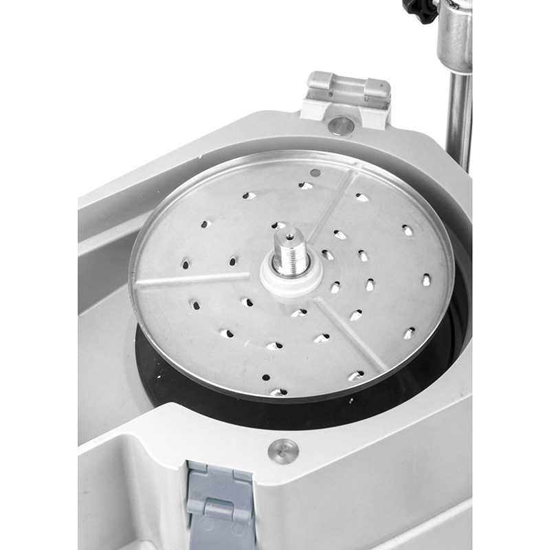 Tapa de policarbonato diseñada para permitir la adición de líquido o ingredientes durante el procesamiento.
