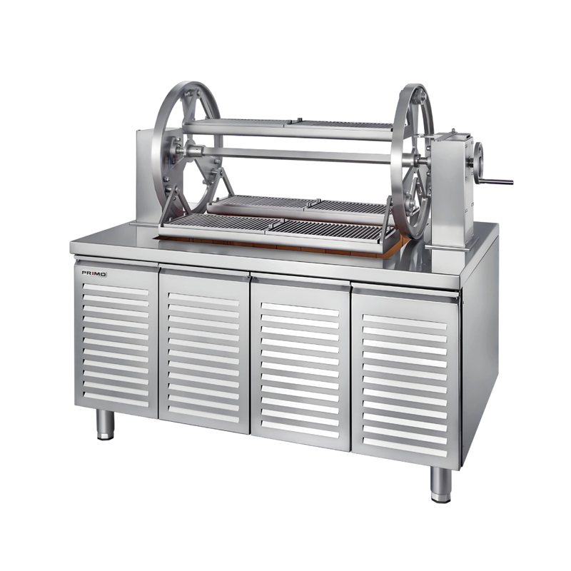 La parrilla elevable argentina cuenta con una parrilla de cocción de altura ajustable y diseño vertical que admite cocción directa e indirecta. Su sistema de elevación mecánico y control manual de temperatura permiten una gestión precisa del calor ajustando la distancia entre el alimento y el carbón. Fabricada en acero inoxidable 304, se puede calentar con carbón o leña de frutas y tiene una altura de cocción regulable de 80 a 470 mm.