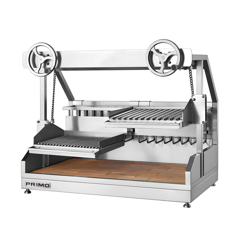 La parrilla elevable argentina cuenta con una parrilla de cocción de altura ajustable y diseño vertical que admite cocción directa e indirecta. Su sistema de elevación mecánico y control manual de temperatura permiten una gestión precisa del calor ajustando la distancia entre el alimento y el carbón. Fabricado en acero inoxidable 304, se puede calentar con carbón o leña de frutas y tiene una altura de cocción regulable de 80 a 470 mm.